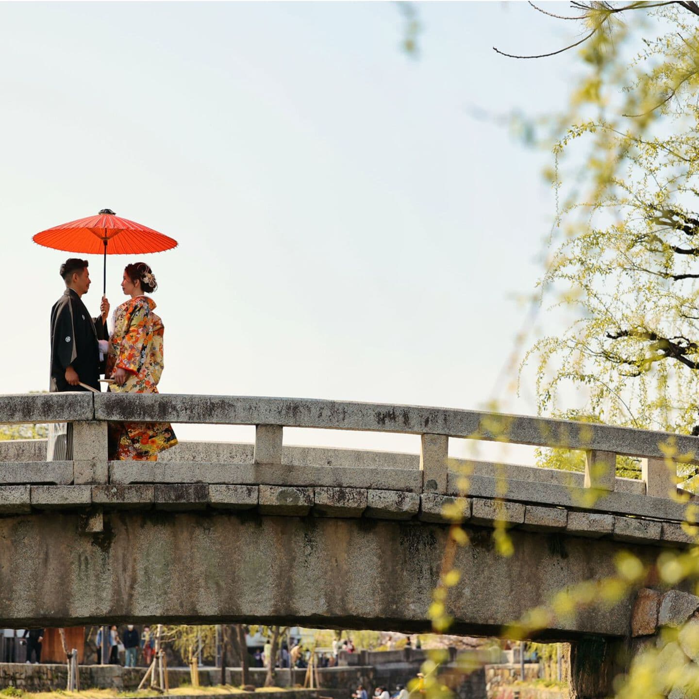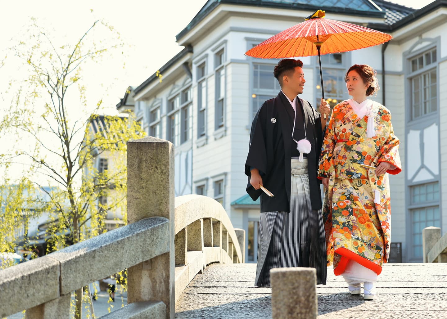 お店の目の前に広がる人気の観光スポット『倉敷美観地区』での和装ロケーション撮影が手ぶらで可能です。